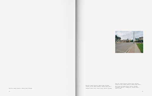 All photographs are based on the matrix of Stephen Shores legendary 'A Road Trip Journal'. Volker Renner tried to redo all the photographs Shore did on his trip in 1973. Renner kept the information Shore made and changed them if the name had changed within time. People and places Renner could not find and could not photograph are left blank in the layout. The route varies in some places, due to the fact that Shore didn't take pictures the whole journey. 37 years later Volker Renner followed his photographs like a pilgrimage - or like a tourist who follows his attractions. His photographs as Renners attraction, in search of Shores tracks, his motives and movements within a city and on the road.